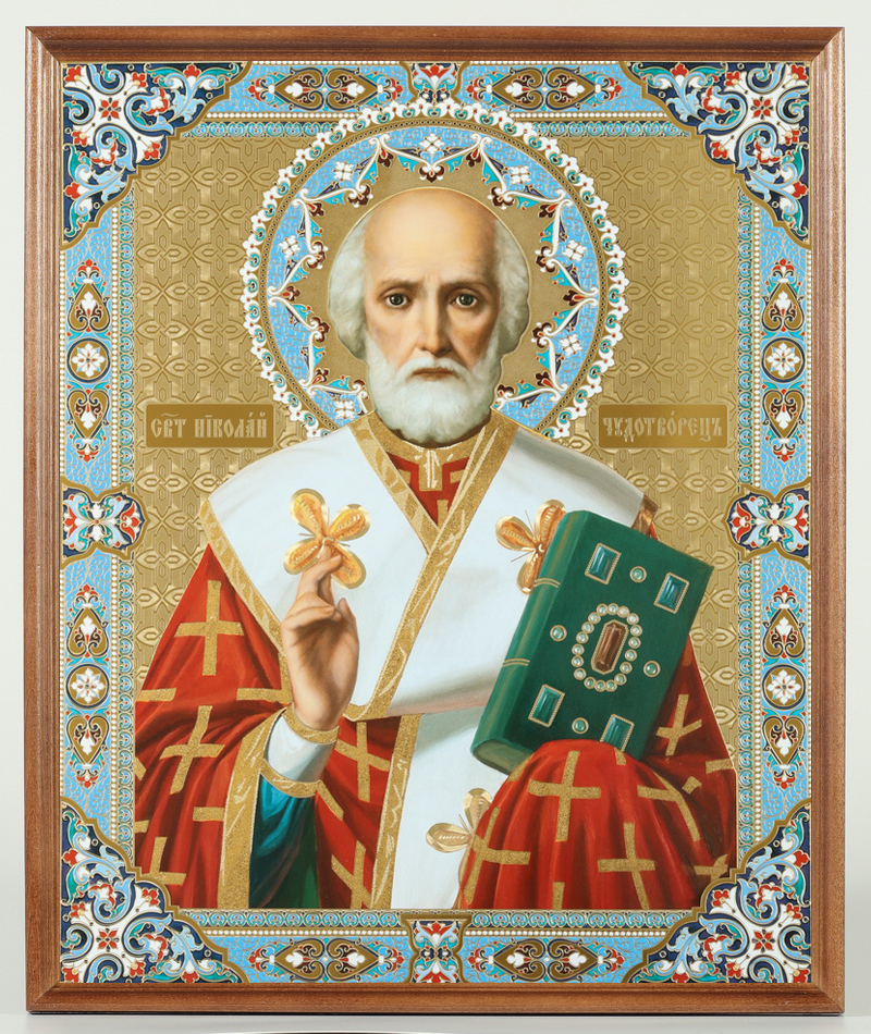 Икона в деревянной рамке №1 30х40 двойное тиснение, упаковка Николай Чудотворец 17