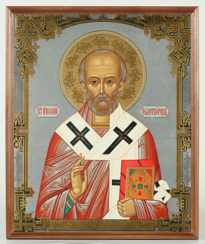 Икона в деревянной рамке №1 30х40 двойное тиснение, упаковка Николай Чудотворец 4