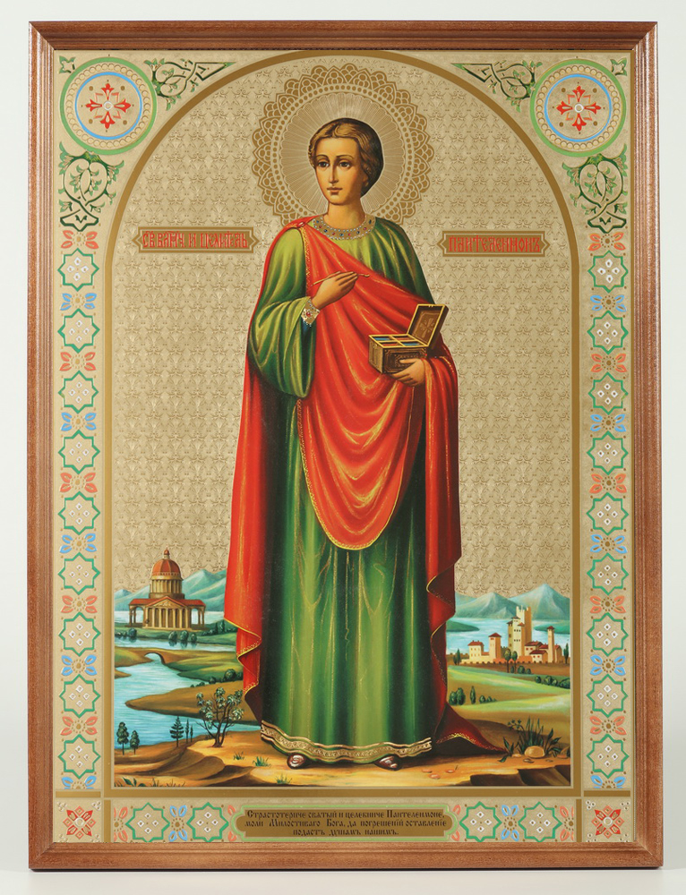 Икона в деревянной рамке №1 30х40 двойное тиснение, упаковка Пантелеимон (ростовой) 01