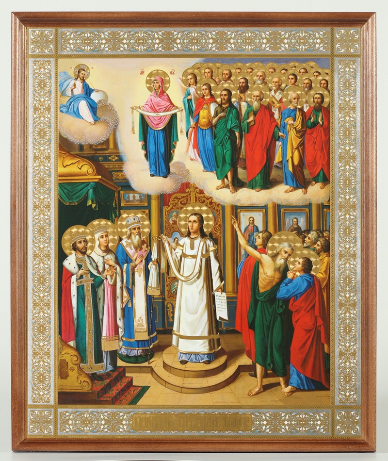 Икона в деревянной рамке №1 30х40 двойное тиснение, упаковка Покров Хотьковский