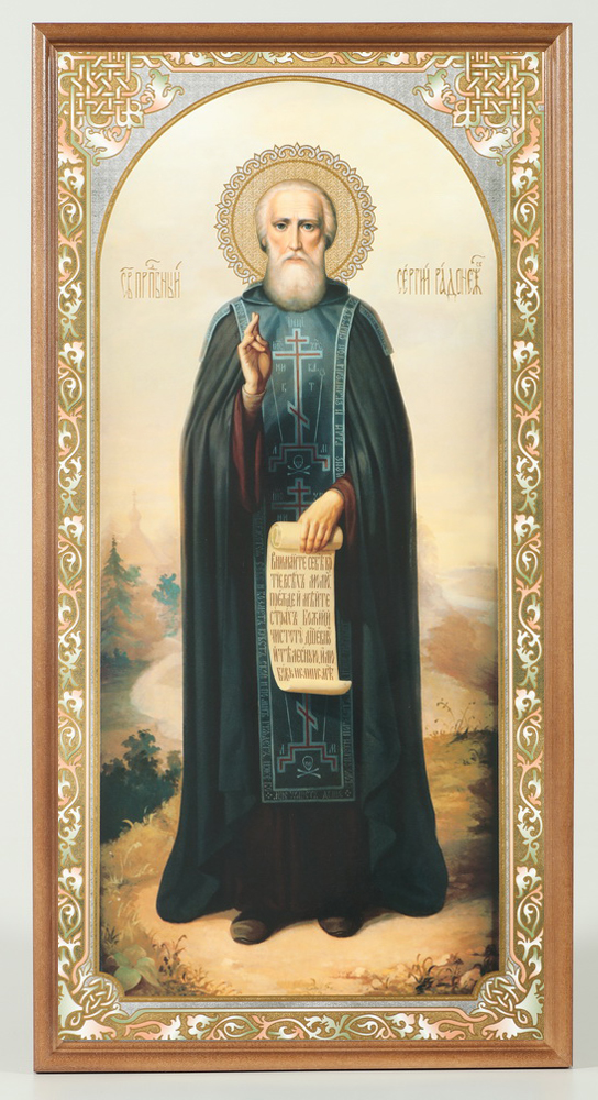 Икона в деревянной рамке №1 30х40 двойное тиснение, упаковка Сергий Радонежский (ростовой)