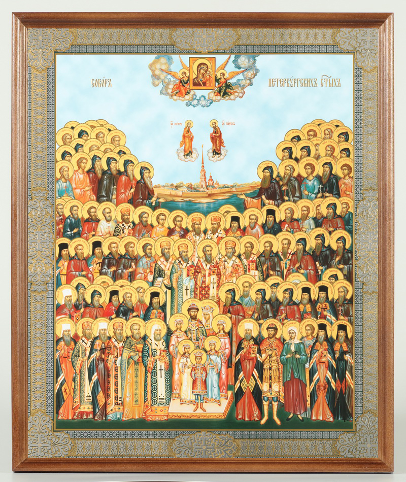 Икона в деревянной рамке №1 30х40 двойное тиснение, упаковка Собор Петербургских святых