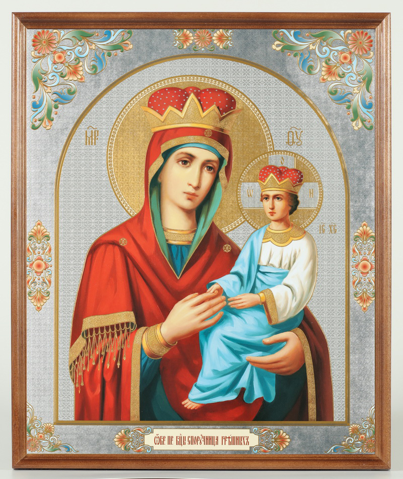 Икона в деревянной рамке №1 30х40 двойное тиснение, упаковка Споручница грешных