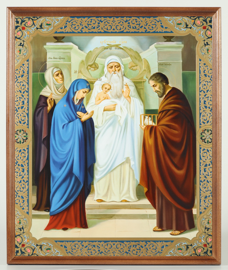 Икона в деревянной рамке №1 30х40 двойное тиснение, упаковка Сретение Господне 2