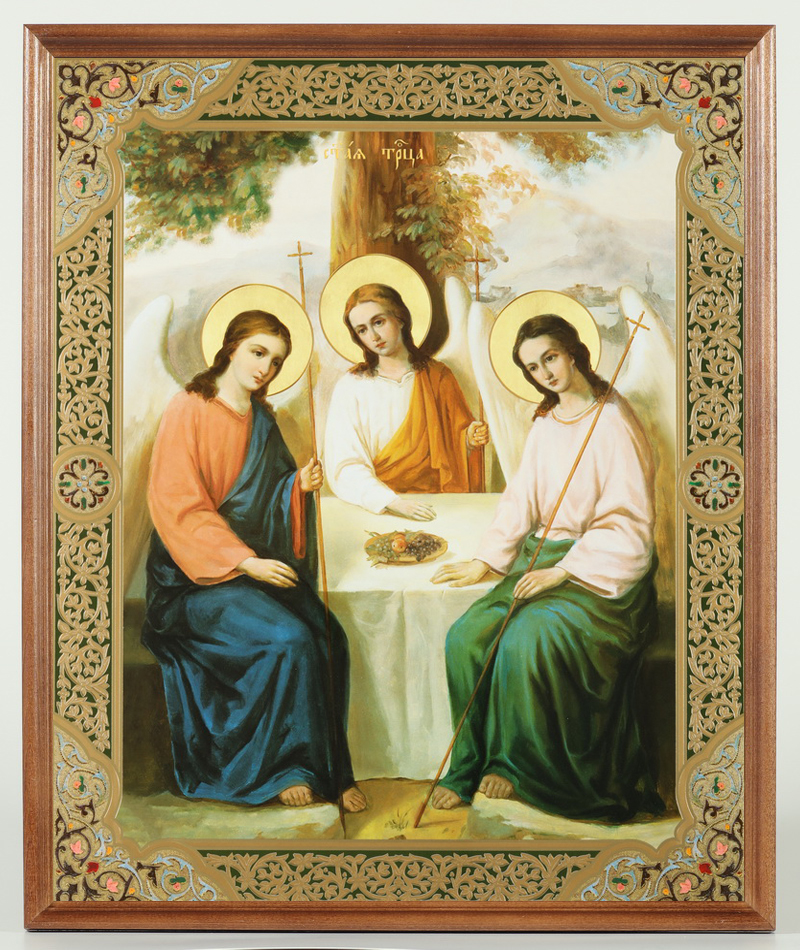 Икона в деревянной рамке №1 30х40 двойное тиснение, упаковка Троица 2