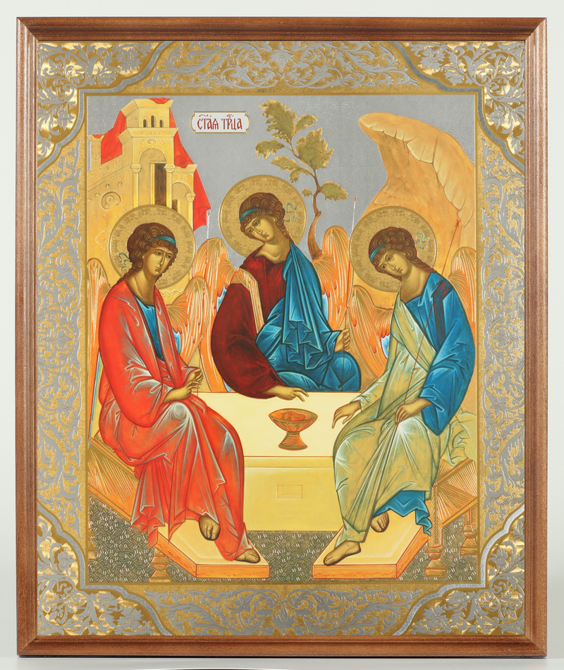 Икона в деревянной рамке №1 30х40 двойное тиснение, упаковка Троица