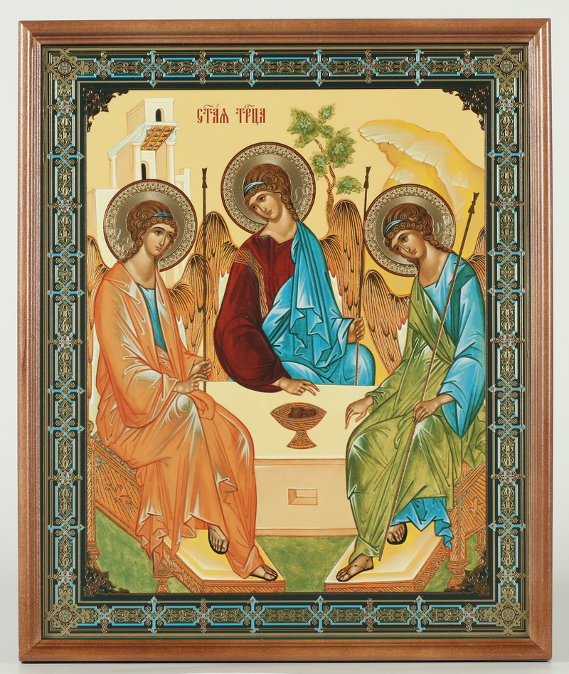 Икона в деревянной рамке №1 30х40 двойное тиснение, упаковка Троица (Рублевская) 3