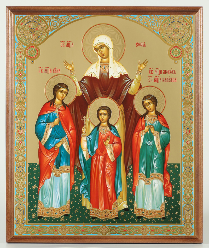 Икона в деревянной рамке №1 30х40 двойное тиснение, упаковка Вера Надежда Любовь 6
