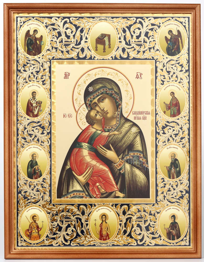 Икона в деревянной рамке №1 30х40 двойное тиснение, упаковка Владимирская БМ (с клеймами)