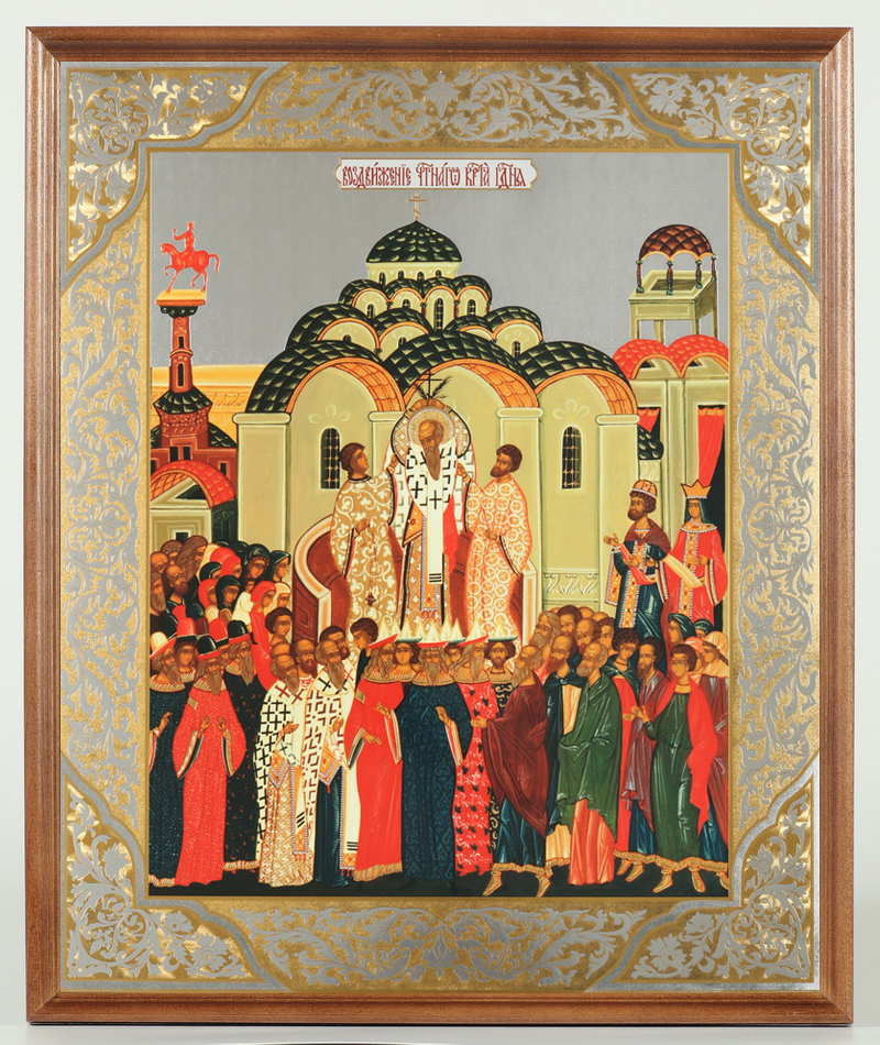Икона в деревянной рамке №1 30х40 двойное тиснение, упаковка Воздвижение Креста Господня