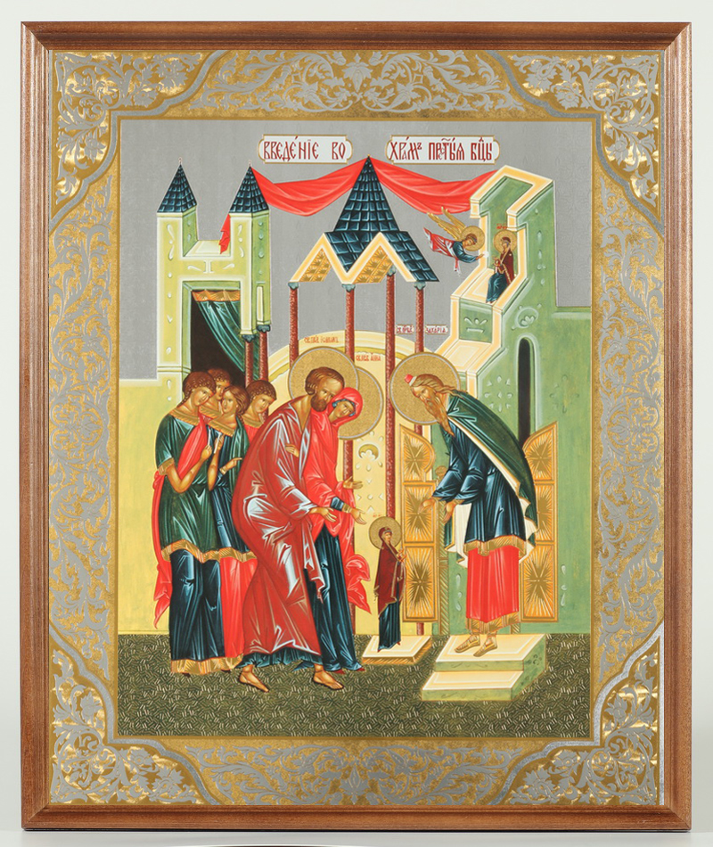 Икона в деревянной рамке №1 30х40 двойное тиснение, упаковка Введение во храм Пресвятой Богородицы