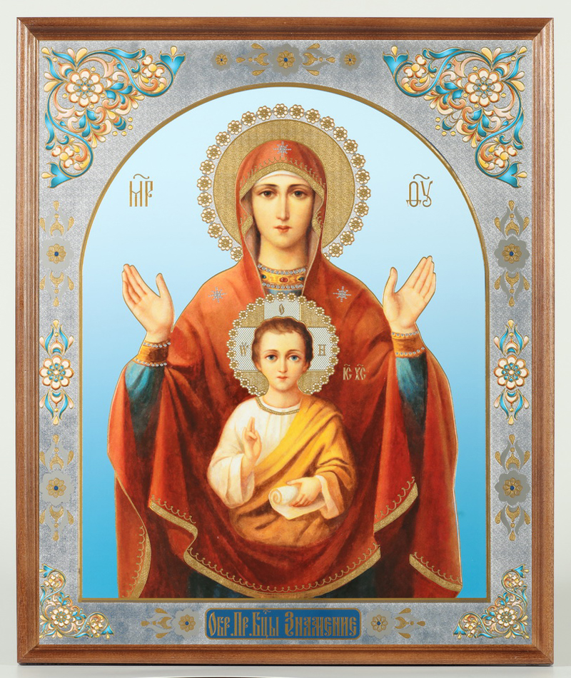 Икона в деревянной рамке №1 30х40 двойное тиснение, упаковка Знамение