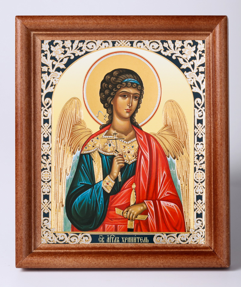 Икона в деревянной рамке 11х13 Набор с Днем Ангела, двойное тиснение Ангел-Хранитель (поясной) №2