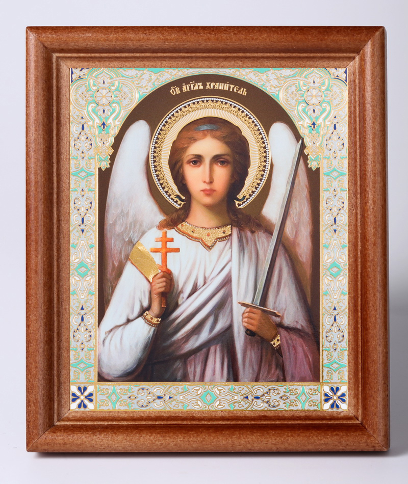 Икона в деревянной рамке 11х13 Набор с Днем Ангела, двойное тиснение Ангел-Хранитель (поясной) №4