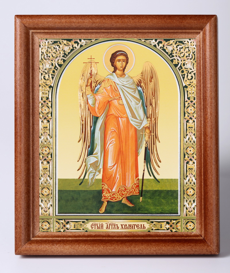 Икона в деревянной рамке 11х13 Набор с Днем Ангела, двойное тиснение Ангел-Хранитель (ростовой) №3