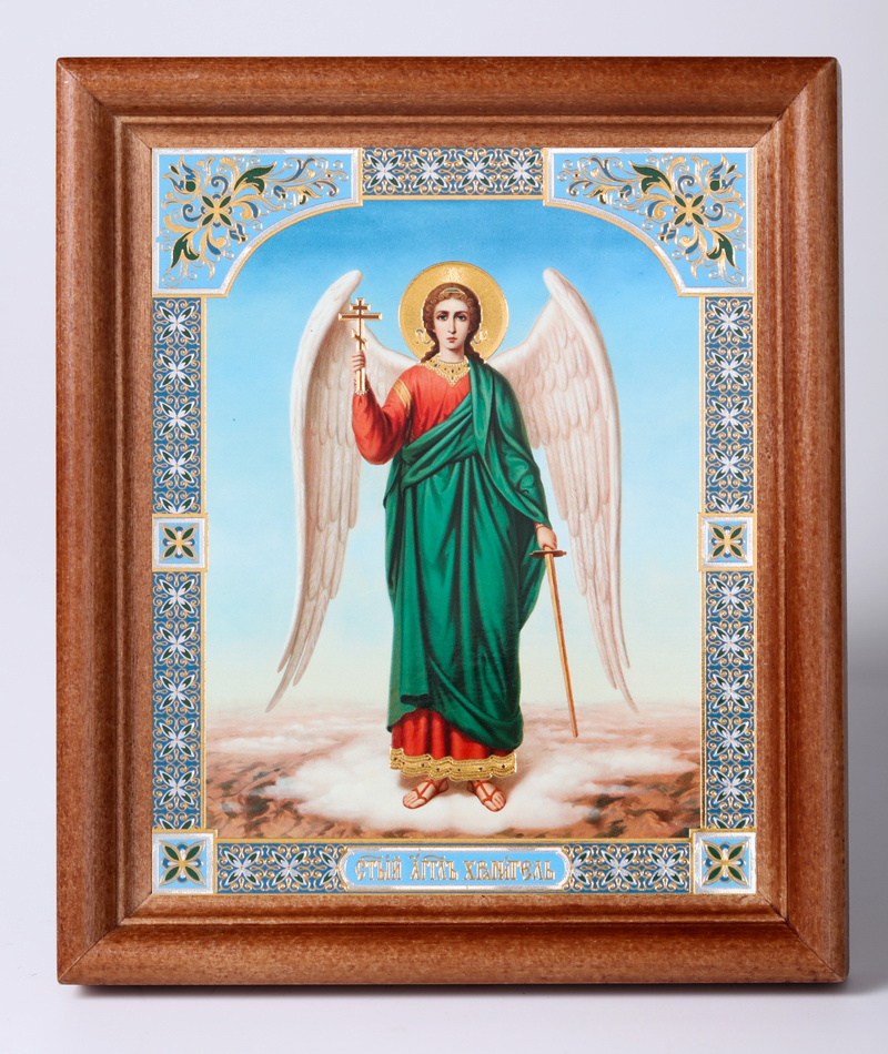 Икона в деревянной рамке 11х13 Набор с Днем Ангела, двойное тиснение Ангел-Хранитель (ростовой) №4