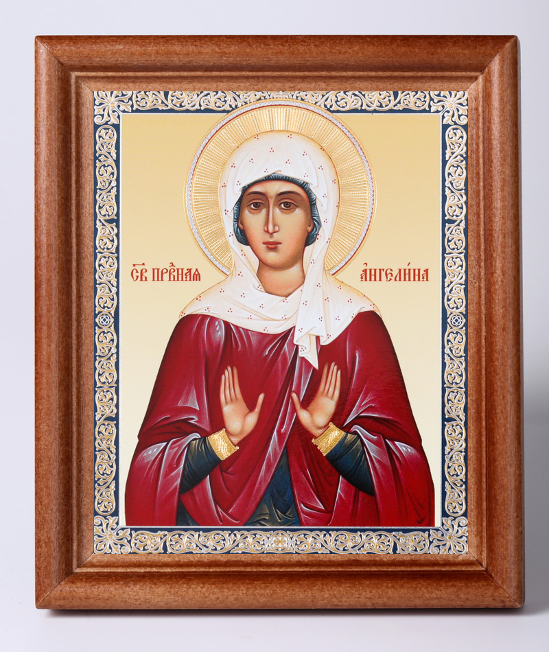 Икона в деревянной рамке 11х13 Набор с Днем Ангела, двойное тиснение Ангелина Сербская, прав. (2)