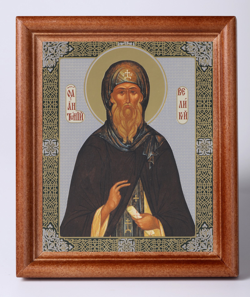 Икона в деревянной рамке 11х13 Набор с Днем Ангела, двойное тиснение Антоний Великий