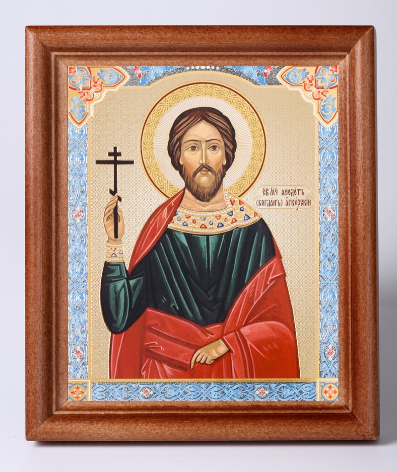 Икона в деревянной рамке 11х13 Набор с Днем Ангела, двойное тиснение Богдан