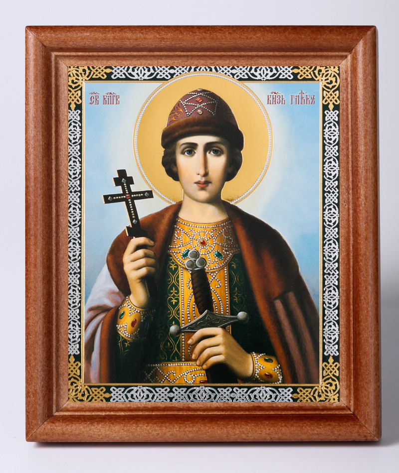 Икона в деревянной рамке 11х13 Набор с Днем Ангела, двойное тиснение Глеб, благоверный князь 2