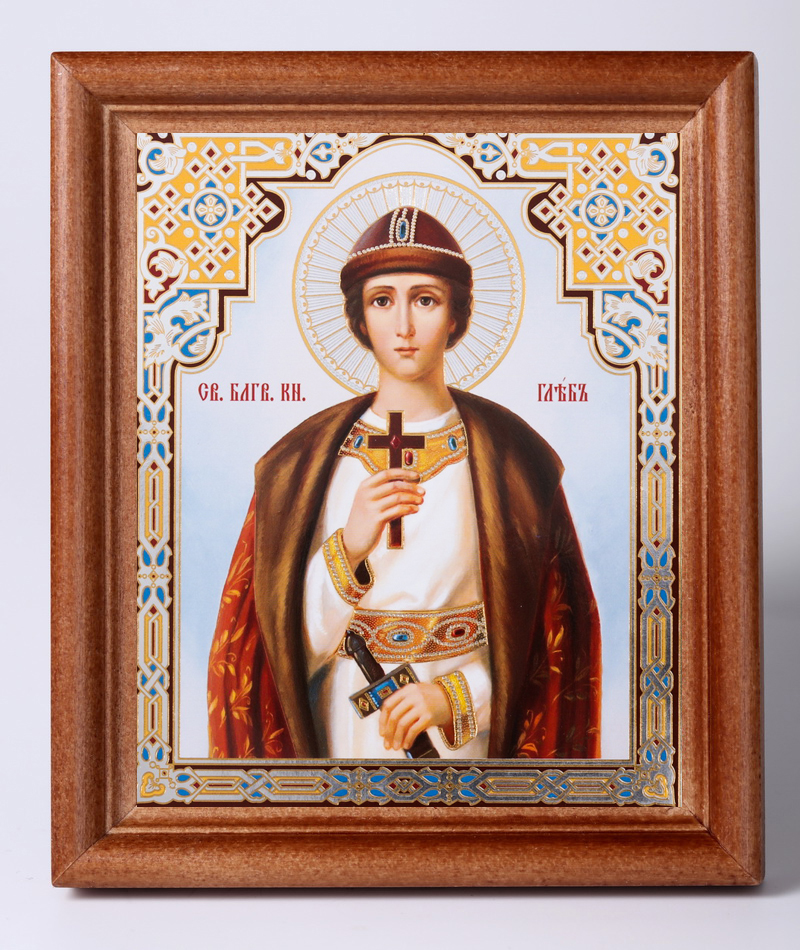 Икона в деревянной рамке 11х13 Набор с Днем Ангела, двойное тиснение Глеб, благоверный князь 3