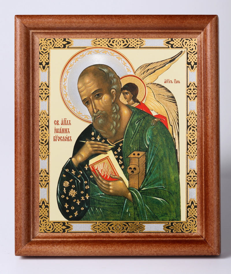 Икона в деревянной рамке 11х13 Набор с Днем Ангела, двойное тиснение Иоанн Богослов 6