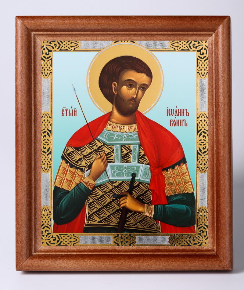 Икона в деревянной рамке 11х13 Набор с Днем Ангела, двойное тиснение Иоанн Воин 2