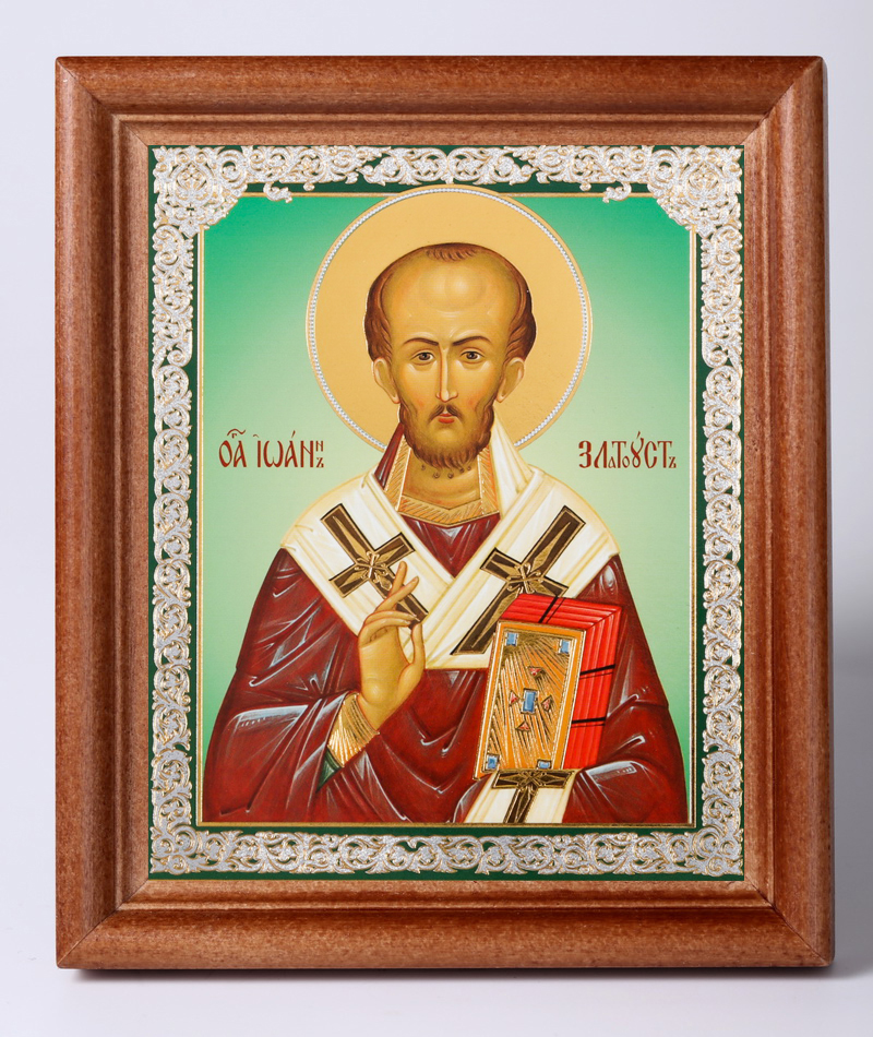 Икона в деревянной рамке 11х13 Набор с Днем Ангела, двойное тиснение Иоанн Златоуст 3