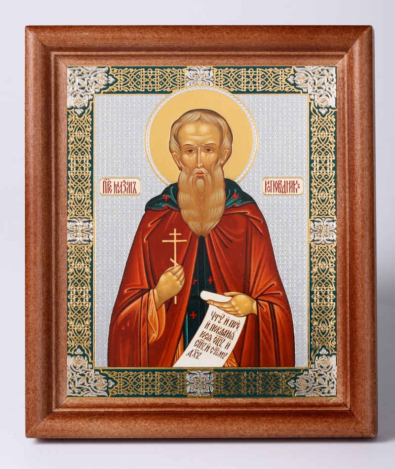 Икона в подарочной упаковке с открыткой и описанием жития святого.