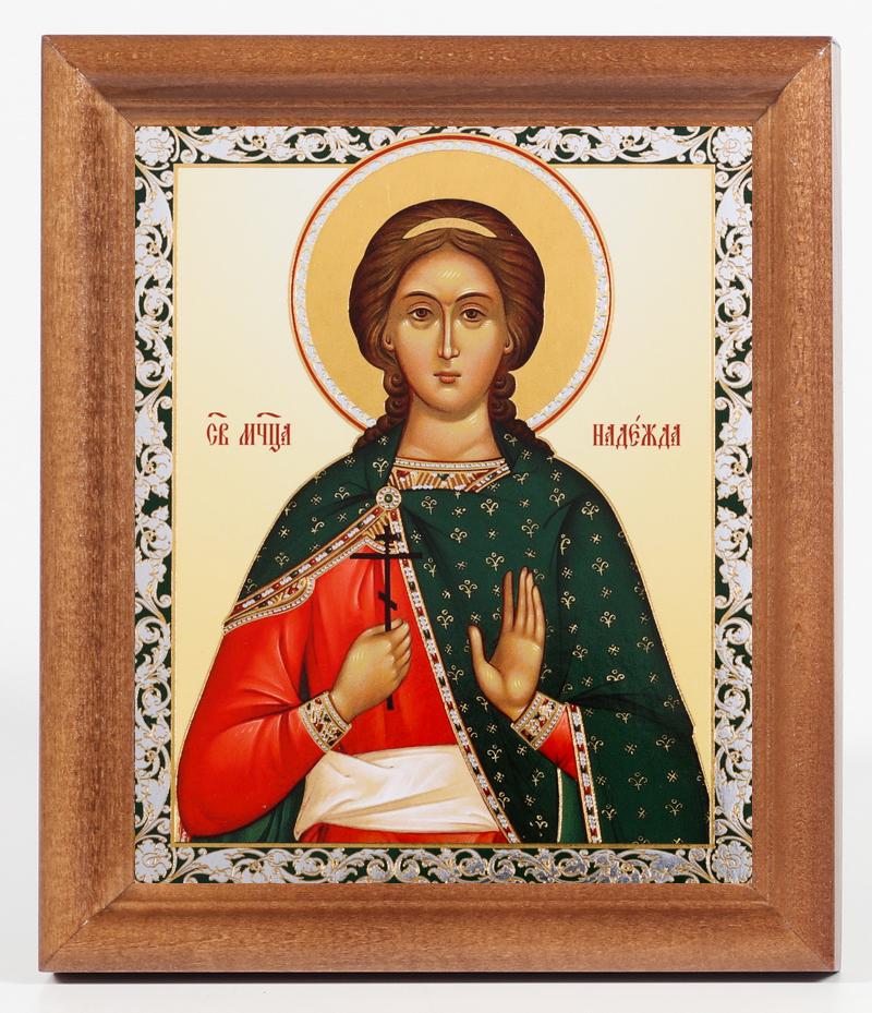 Икона в деревянной рамке 11х13 Набор с Днем Ангела, двойное тиснение Надежда 2