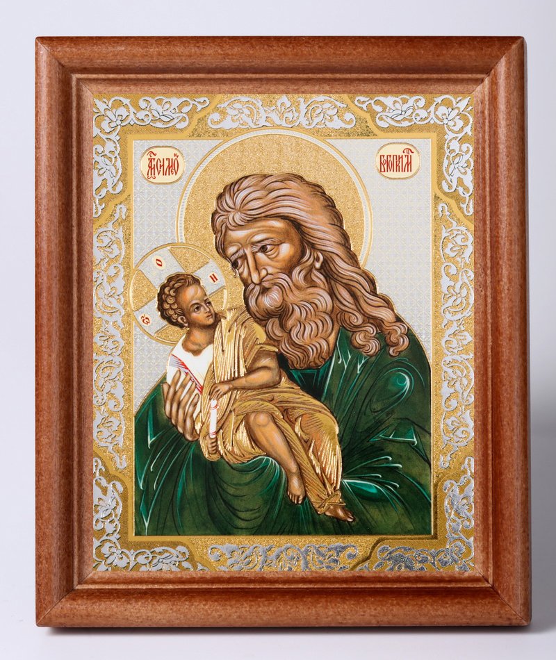 Икона в деревянной рамке 11х13 Набор с Днем Ангела, двойное тиснение Симеон Богоприимец