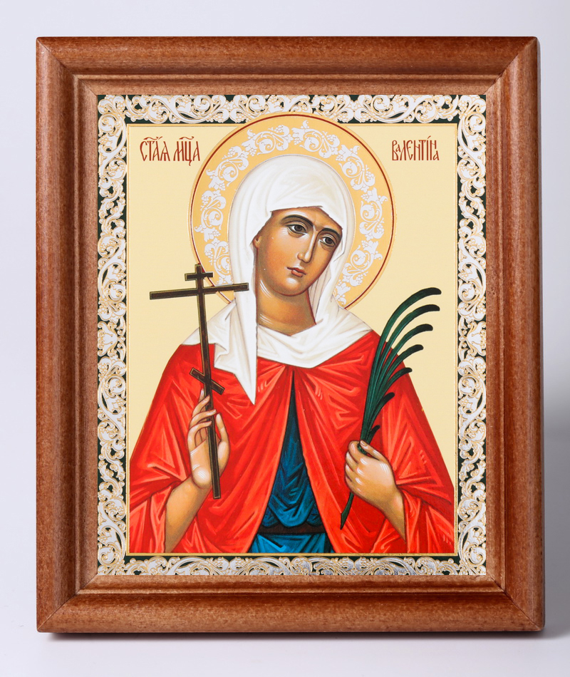 Икона в деревянной рамке 11х13 Набор с Днем Ангела, двойное тиснение Валентина Кесарийская, дева, мц. (3)