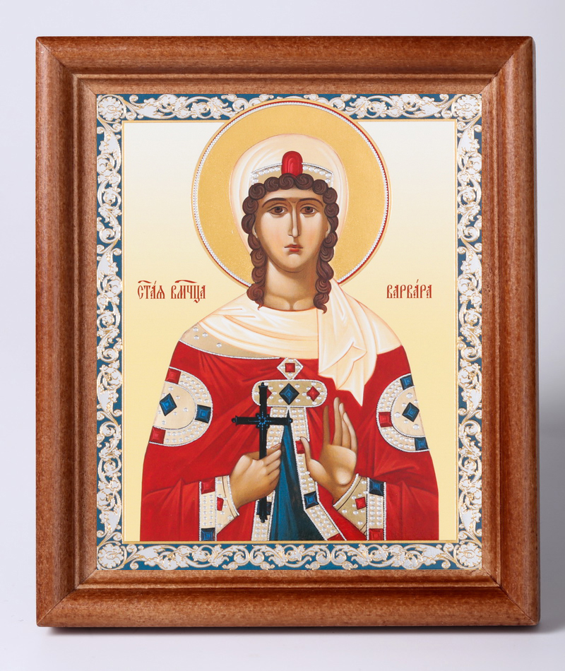 Икона в деревянной рамке 11х13 Набор с Днем Ангела, двойное тиснение Варвара Илиопольская, вмц. (4)