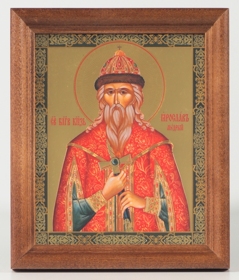 Икона в деревянной рамке 11х13 Набор с Днем Ангела, двойное тиснение Ярослав Мудрый