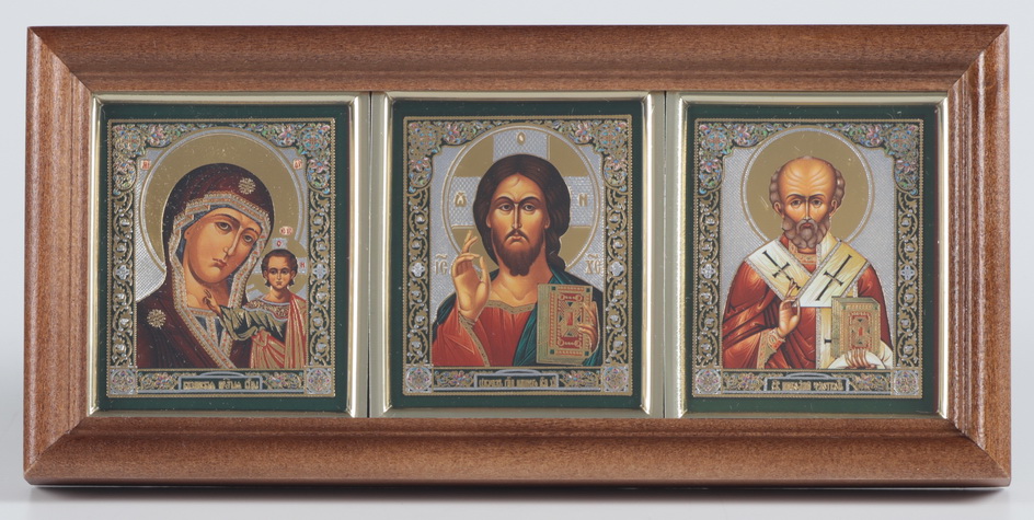 Икона в деревянной рамке 11х22 тройная, двойное тиснение №1