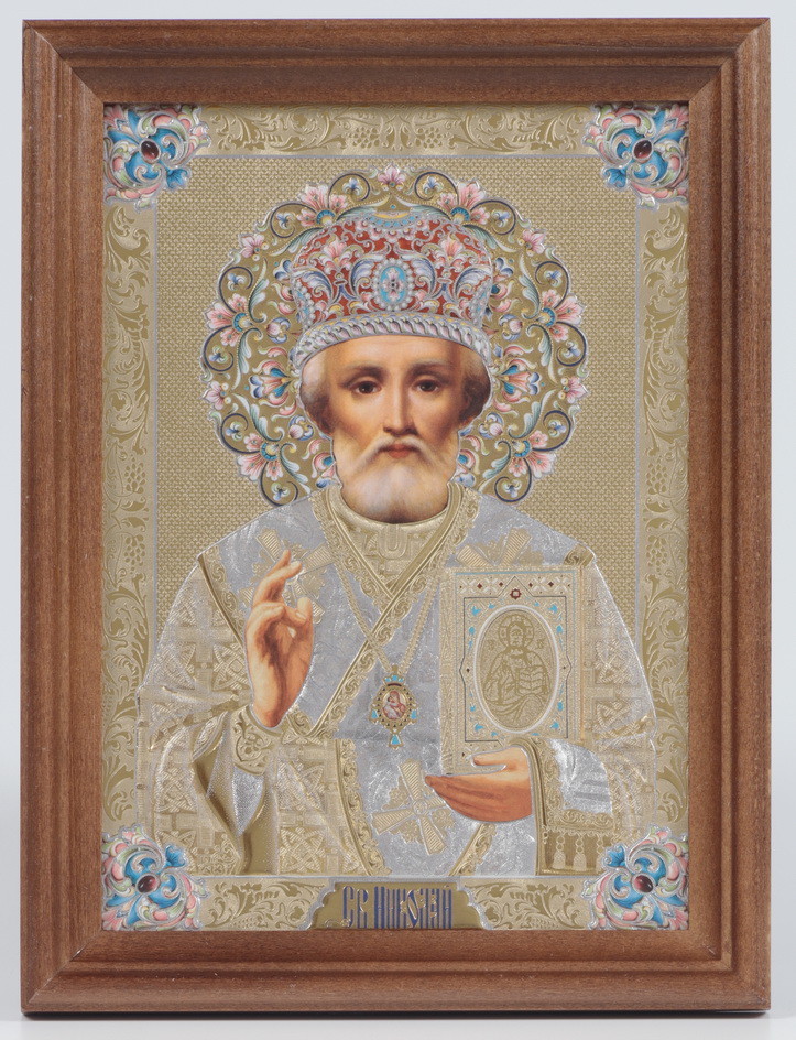 Икона в деревянной рамке 13х18 конгрев (без стекла) Николай Чудотворец