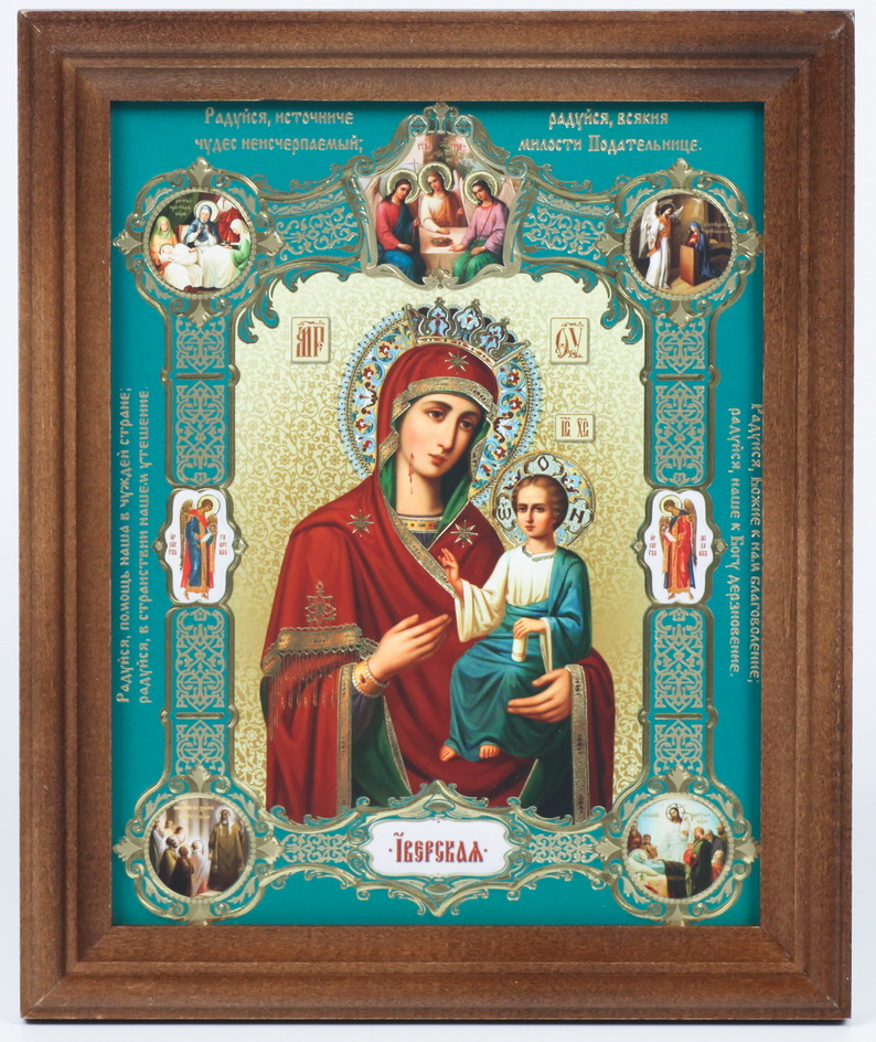Икона в деревянной рамке 13х18 конгрев, плёнка (без стекла) Иверская (с клеймами)