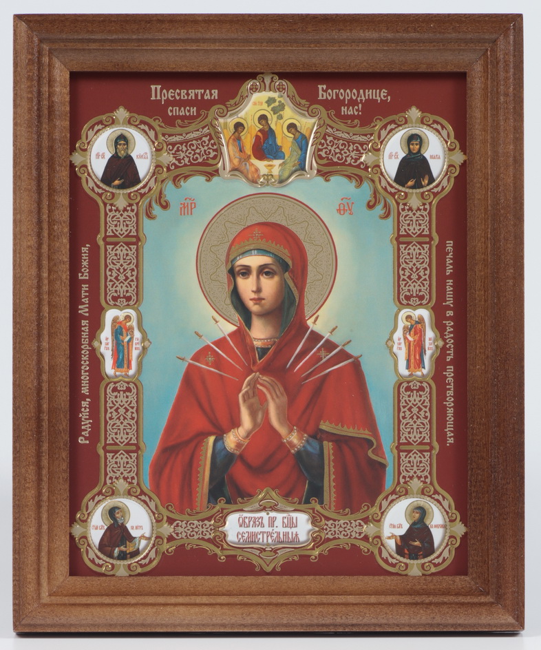 Икона в деревянной рамке 13х18 конгрев, плёнка (без стекла) Семистрельная (с клеймами)