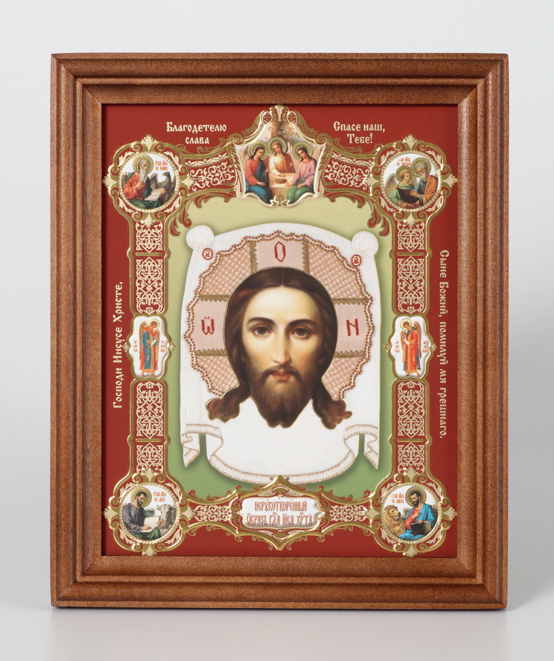 Икона в деревянной рамке 13х18 конгрев, плёнка (без стекла) Спас Нерукотворный (с клеймами)