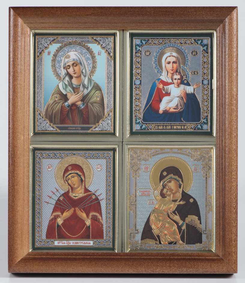 Икона в деревянной рамке 15х18 четырехместная, двойное тиснение