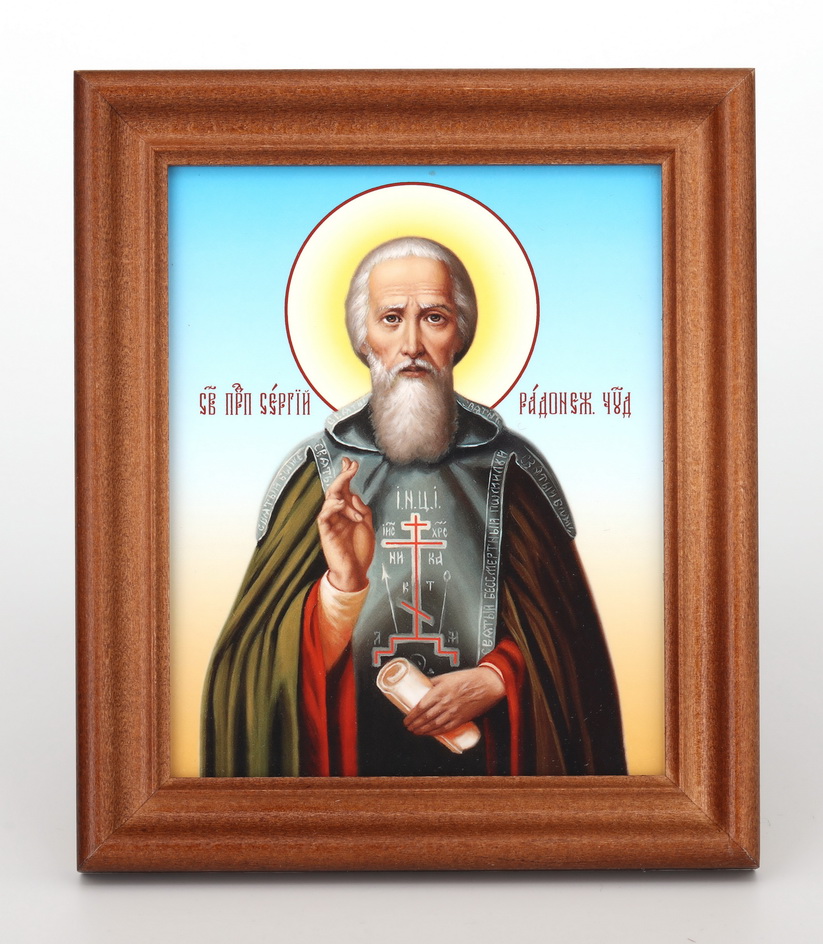Икона в деревянной рамке №2 11х13 пленка Сергий Радонежский