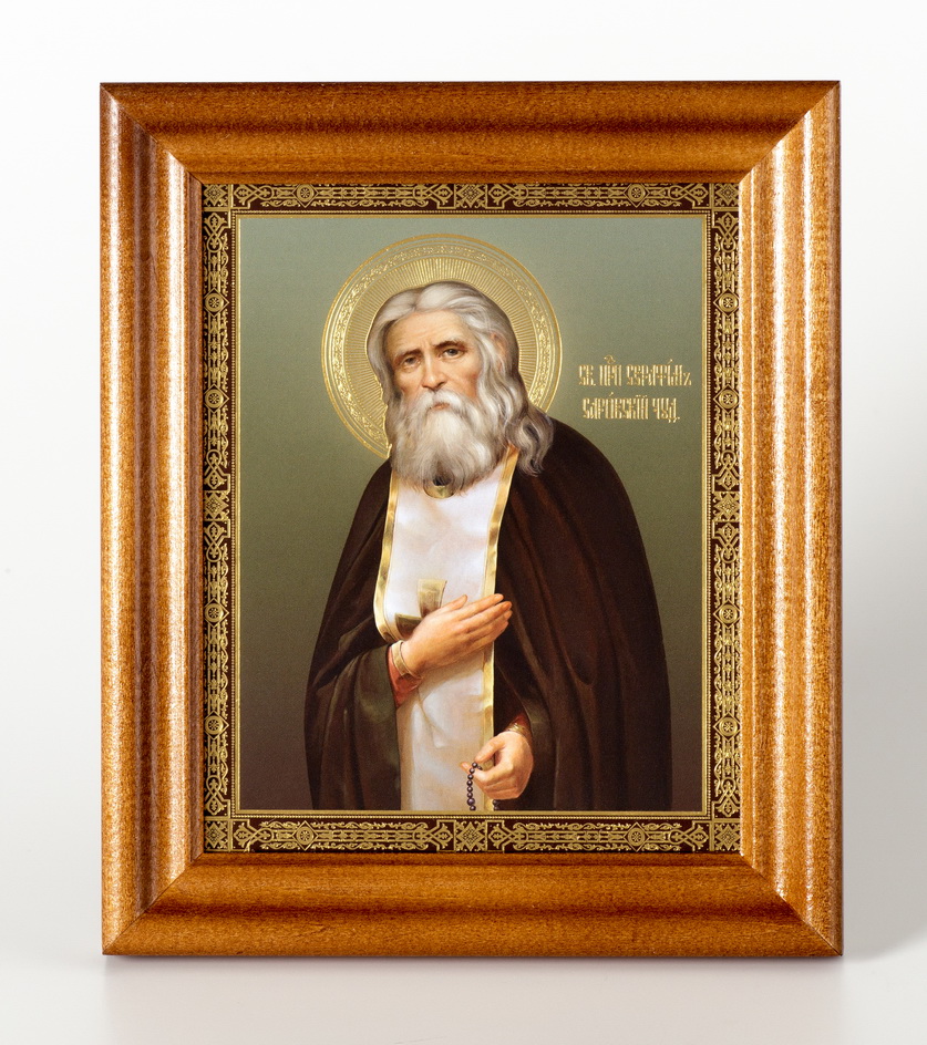 Икона в деревянной рамке №2 11х13 тиснение Серафим Саровский 8