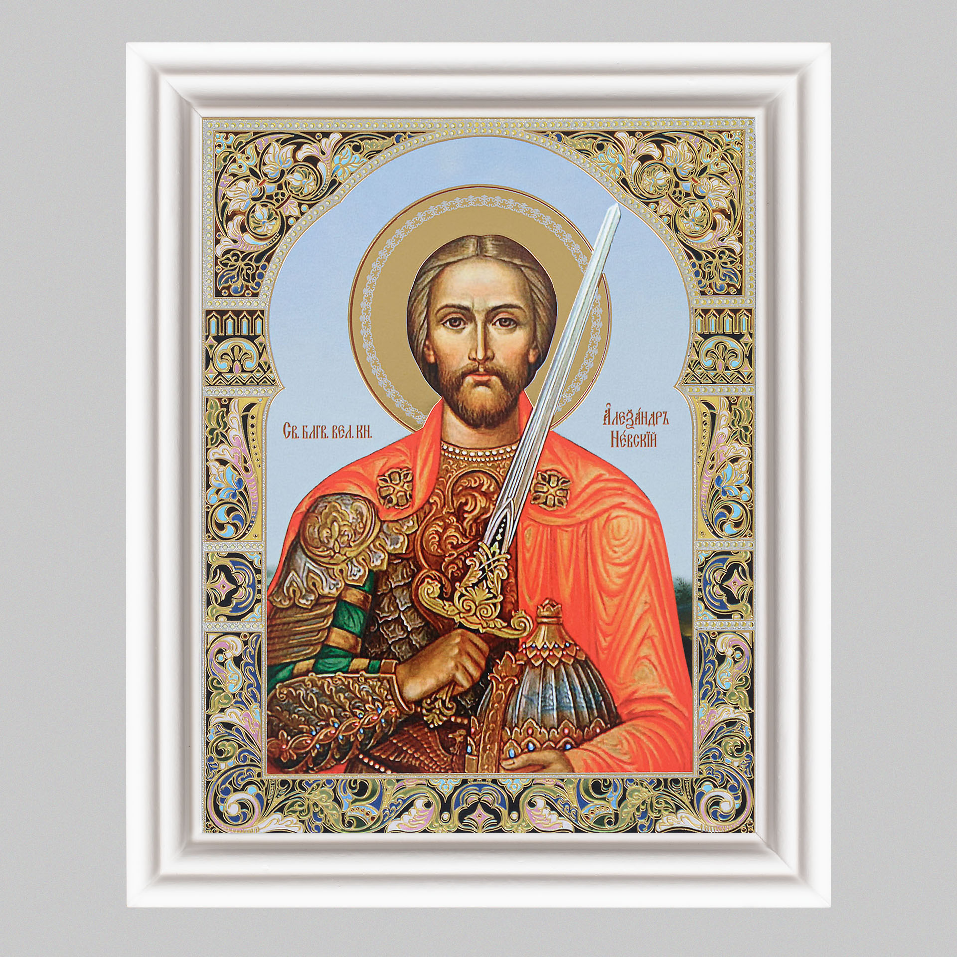 Икона в деревянной рамке №3 11х13 (белая) двойное тиснение Александр Невский 6