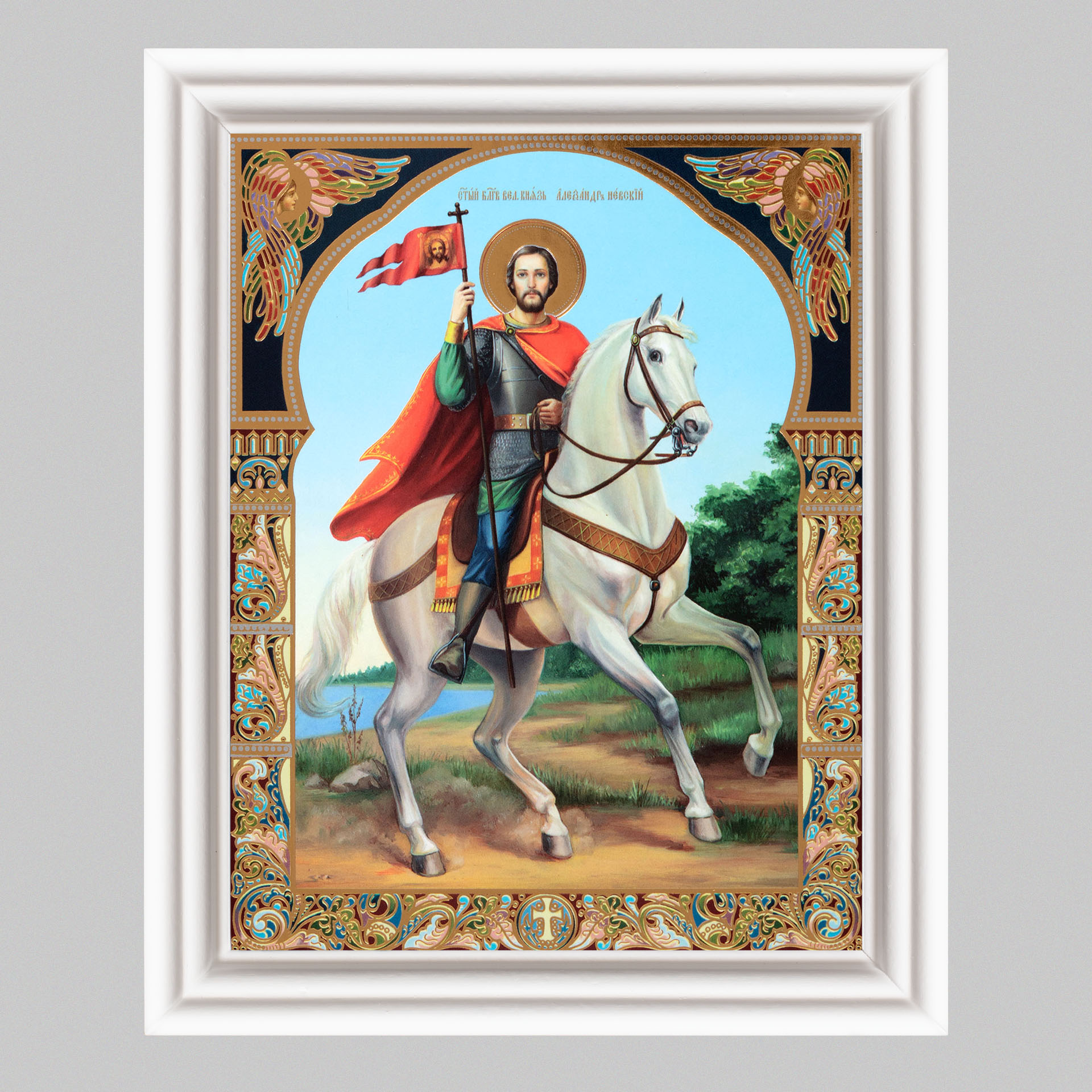 Икона в деревянной рамке №3 11х13 (белая) двойное тиснение Александр Невский 7