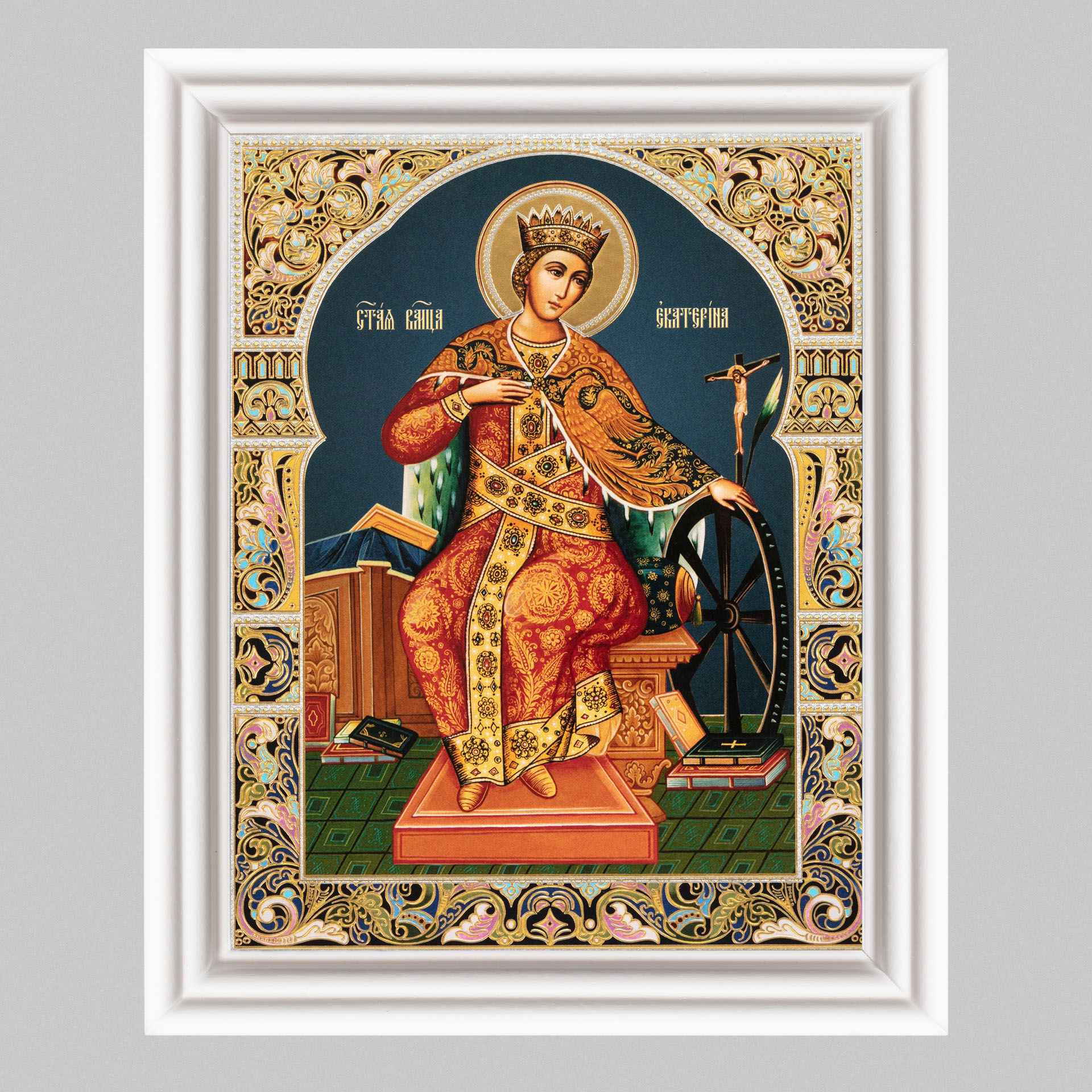 Икона в деревянной рамке №3 11х13 (белая) двойное тиснение Екатерина Александрийская, вмц. (4)