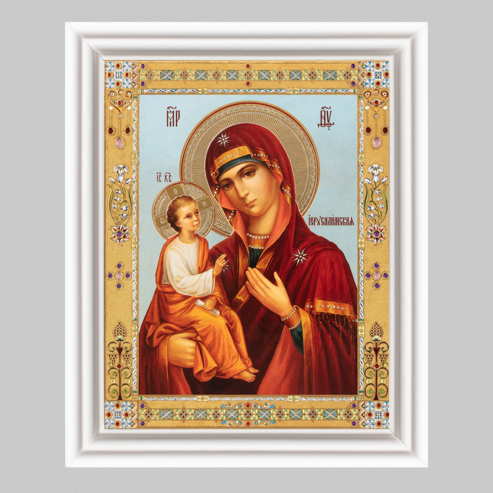 Икона в деревянной рамке №3 11х13 (белая) двойное тиснение Иерусалимская 2