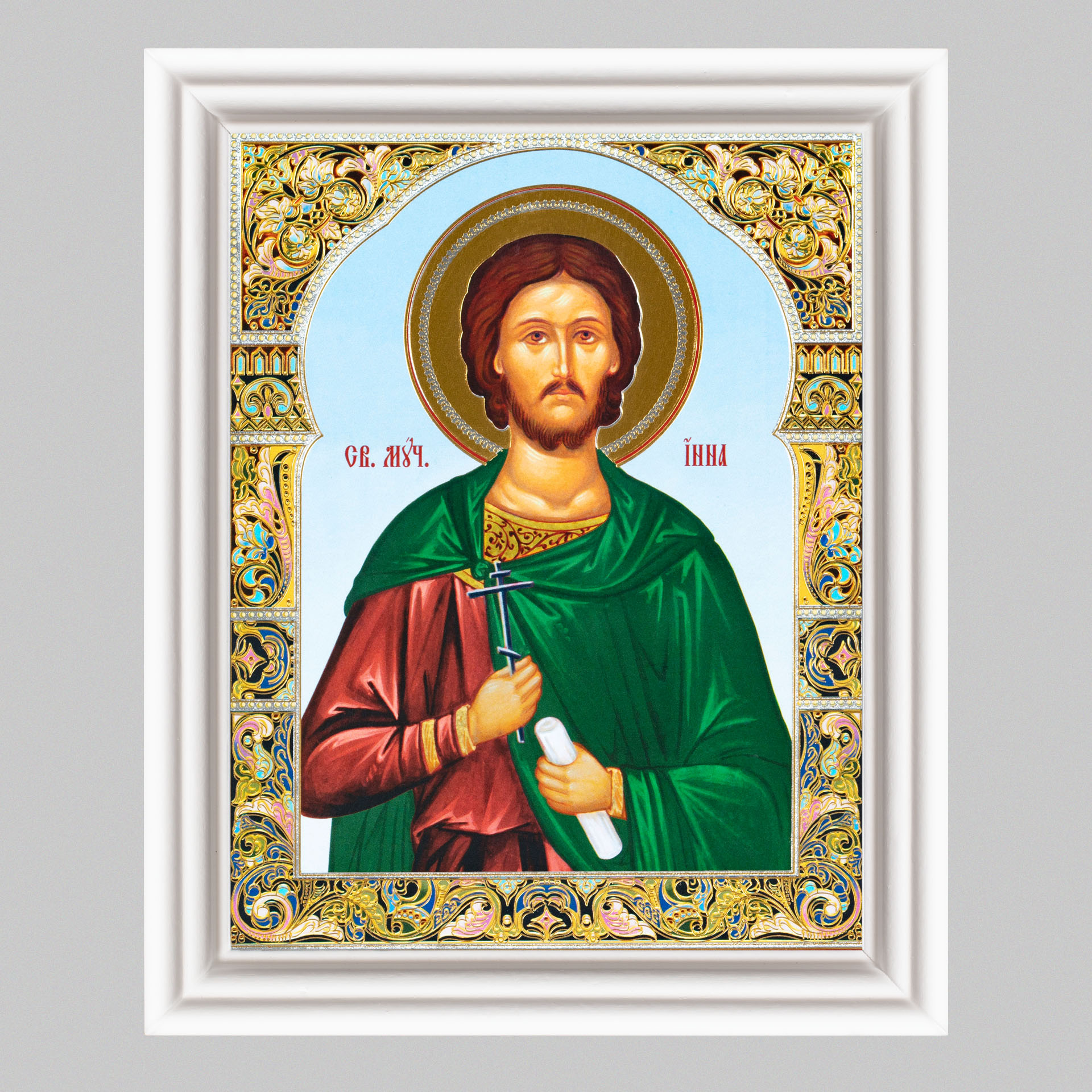 Икона в деревянной рамке №3 11х13 (белая) двойное тиснение Инна 2