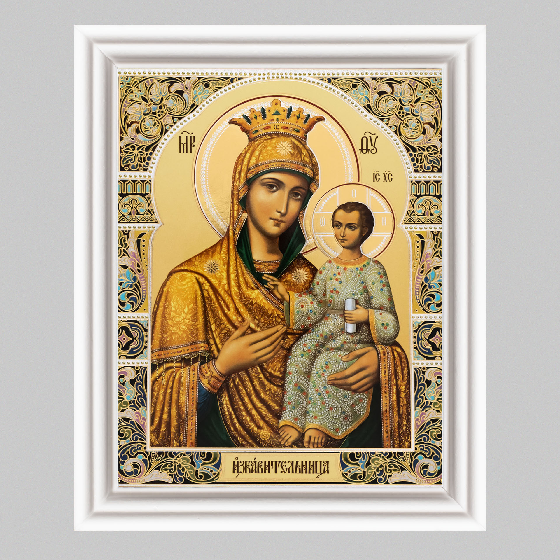 Икона в деревянной рамке №3 11х13 (белая) двойное тиснение Избавительница 3