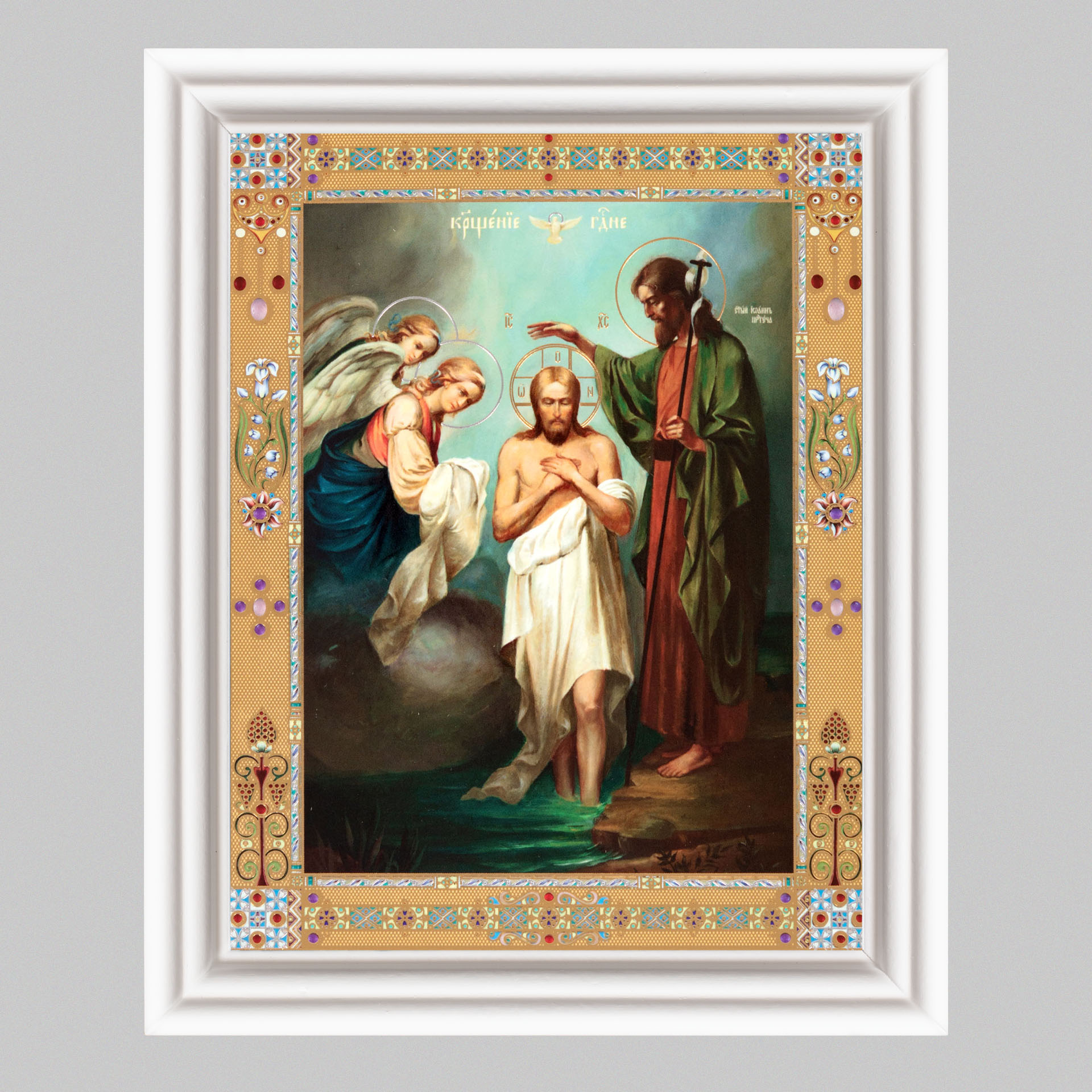 Икона в деревянной рамке №3 11х13 (белая) двойное тиснение Крещение Господне 3
