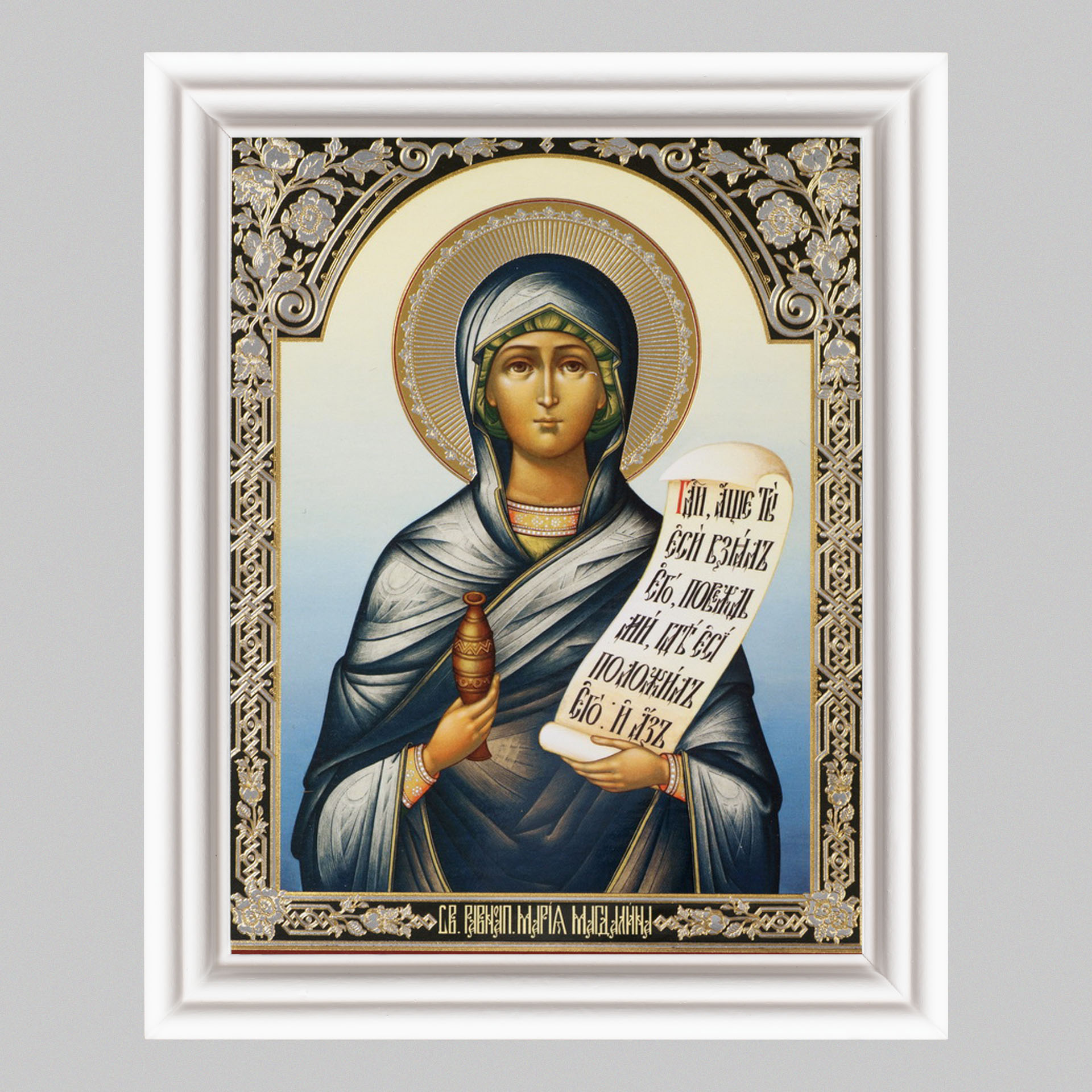 Икона в деревянной рамке №3 11х13 (белая) двойное тиснение Мария Магдалина, равноап. (6)